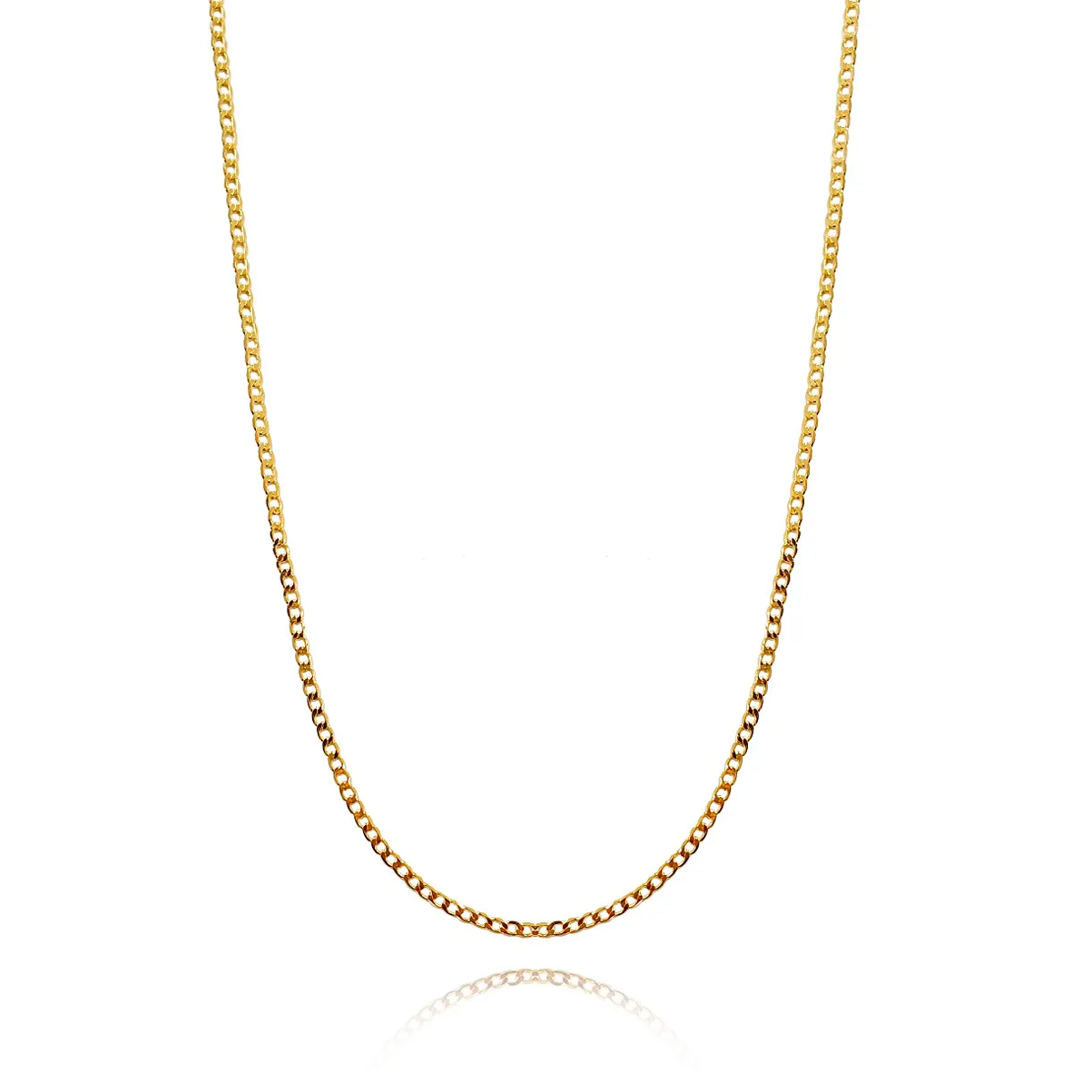 Corrente dourada com elos finos e acabamento polido, ideal para quem busca elegância em cada detalhe. Seu design clássico combina com diferentes estilos e ocasiões, podendo ser usada sozinha ou acompanhada de pingentes. Um acessório leve, durável e cheio de sofisticação.