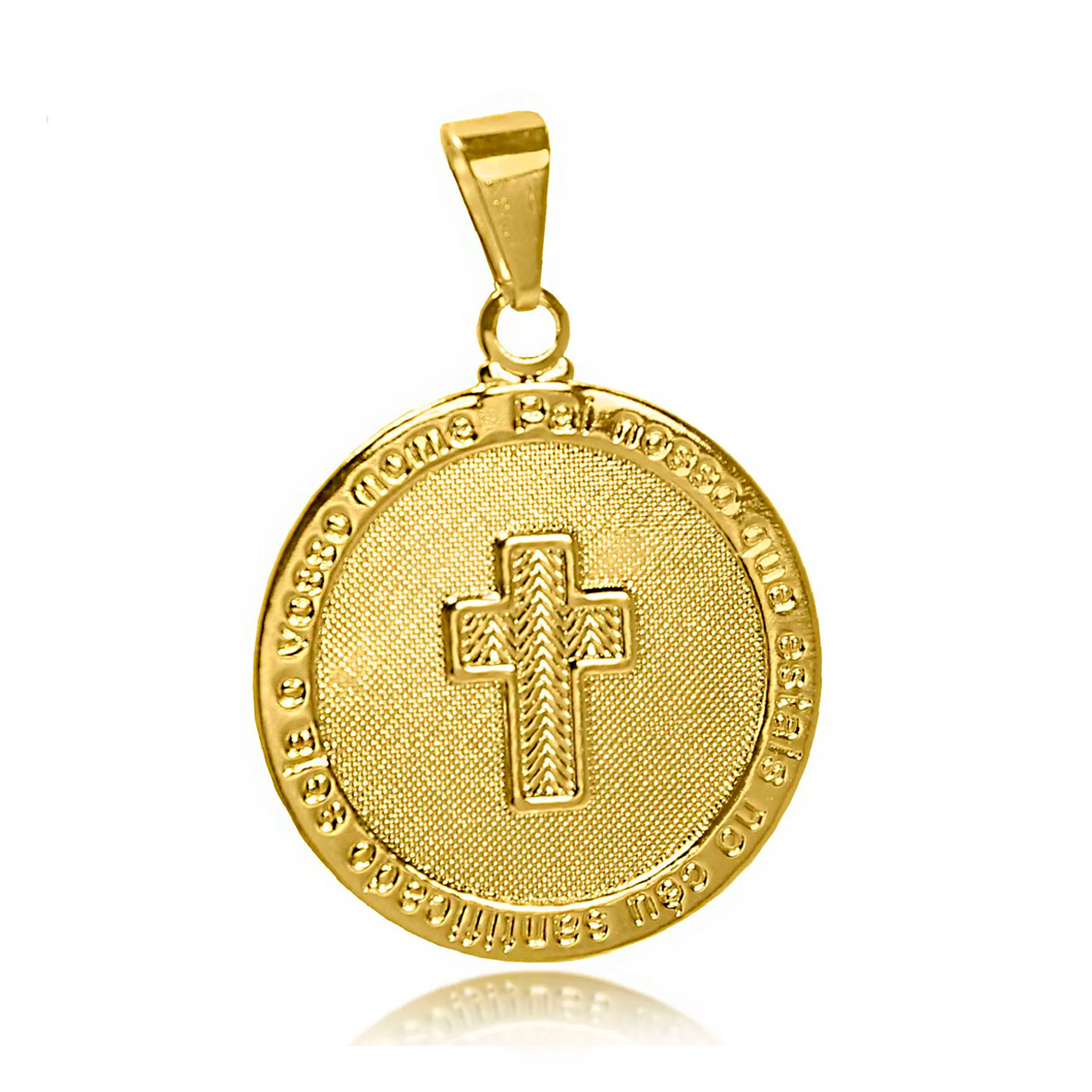 Pingente Pai Nosso com Cruz Folheado Ouro 18k