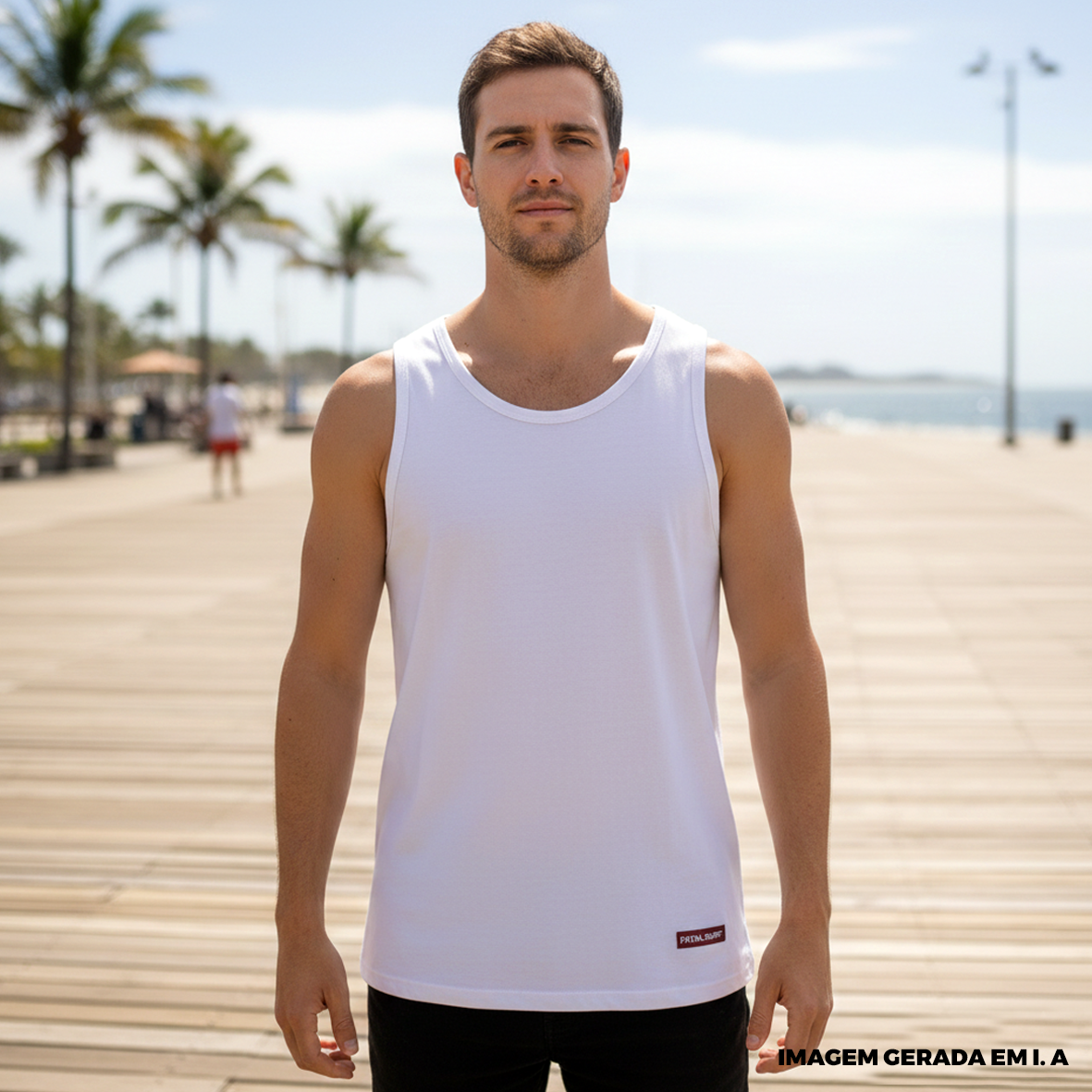 Regata masculina em tecido leve e confortável, com modelagem reta, gola arredondada e cavas amplas, garantindo liberdade de movimento e ventilação.