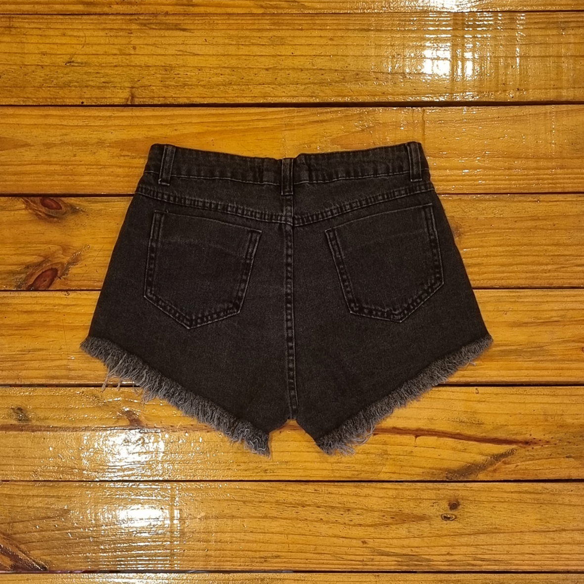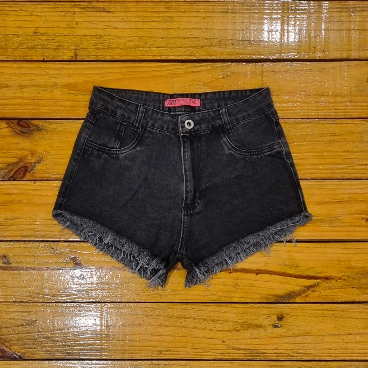 Short jeans na cor preta e com barra desfiada, perfeito para quem gosta de um visual moderno e cheio de atitude.