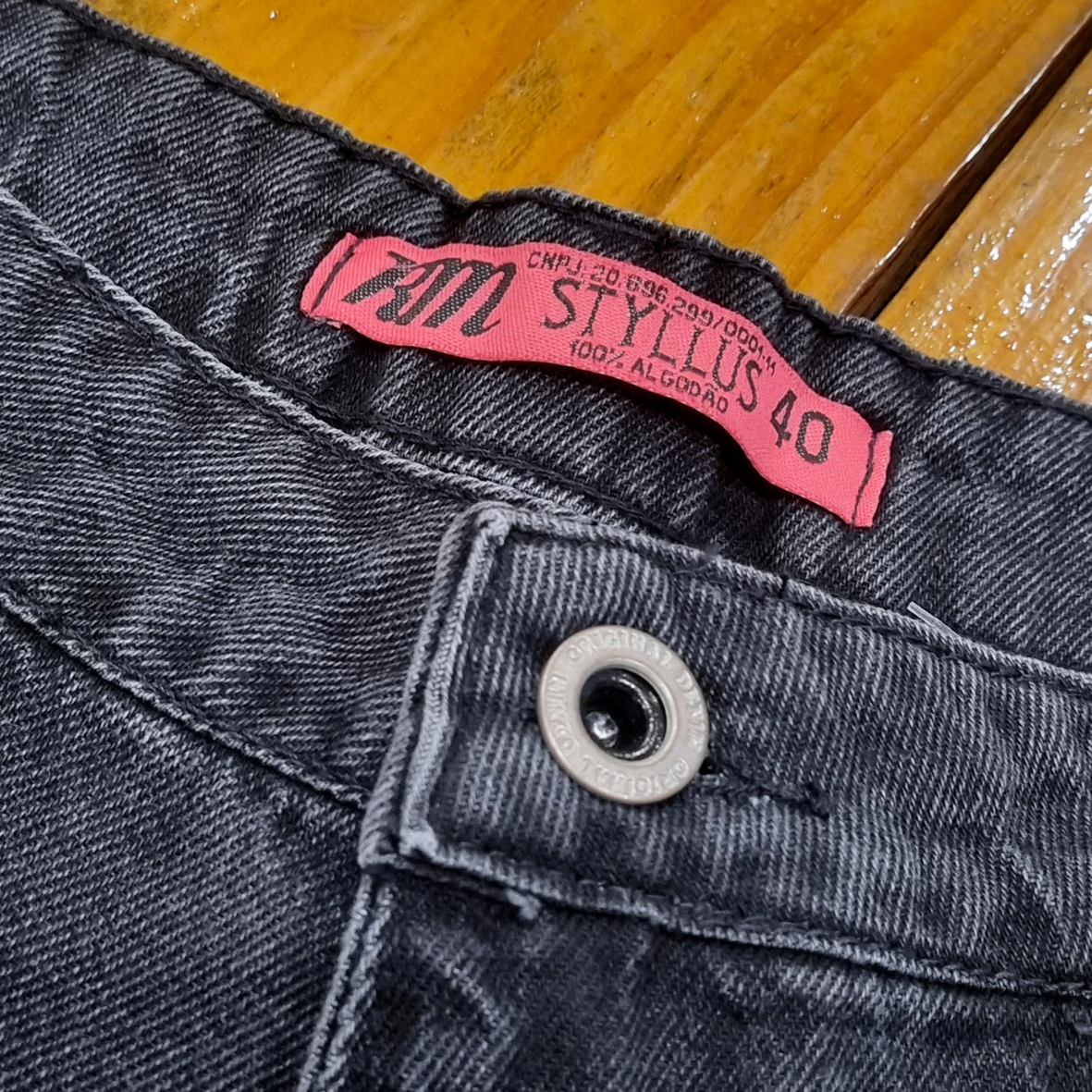 Botão e zíper funcional.
