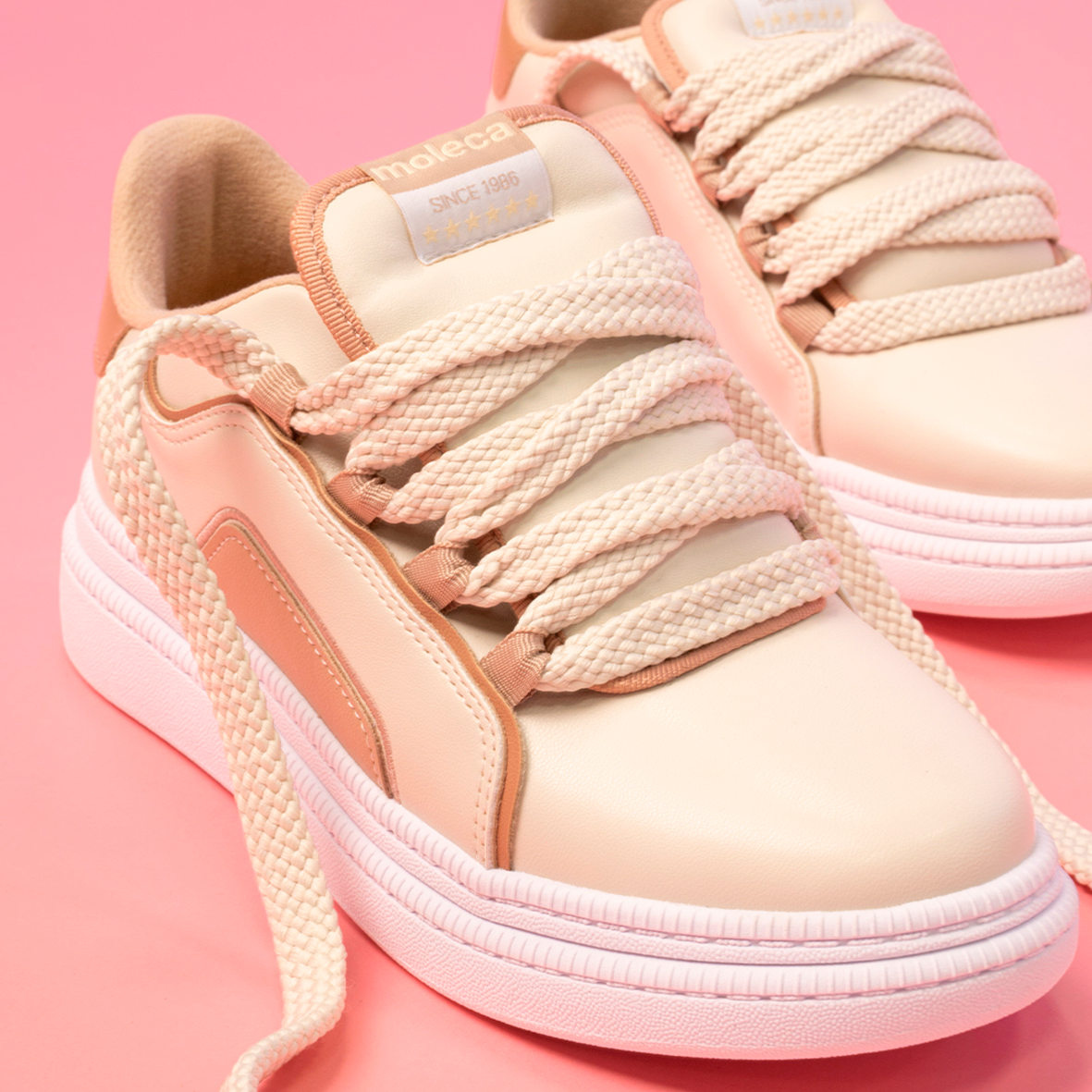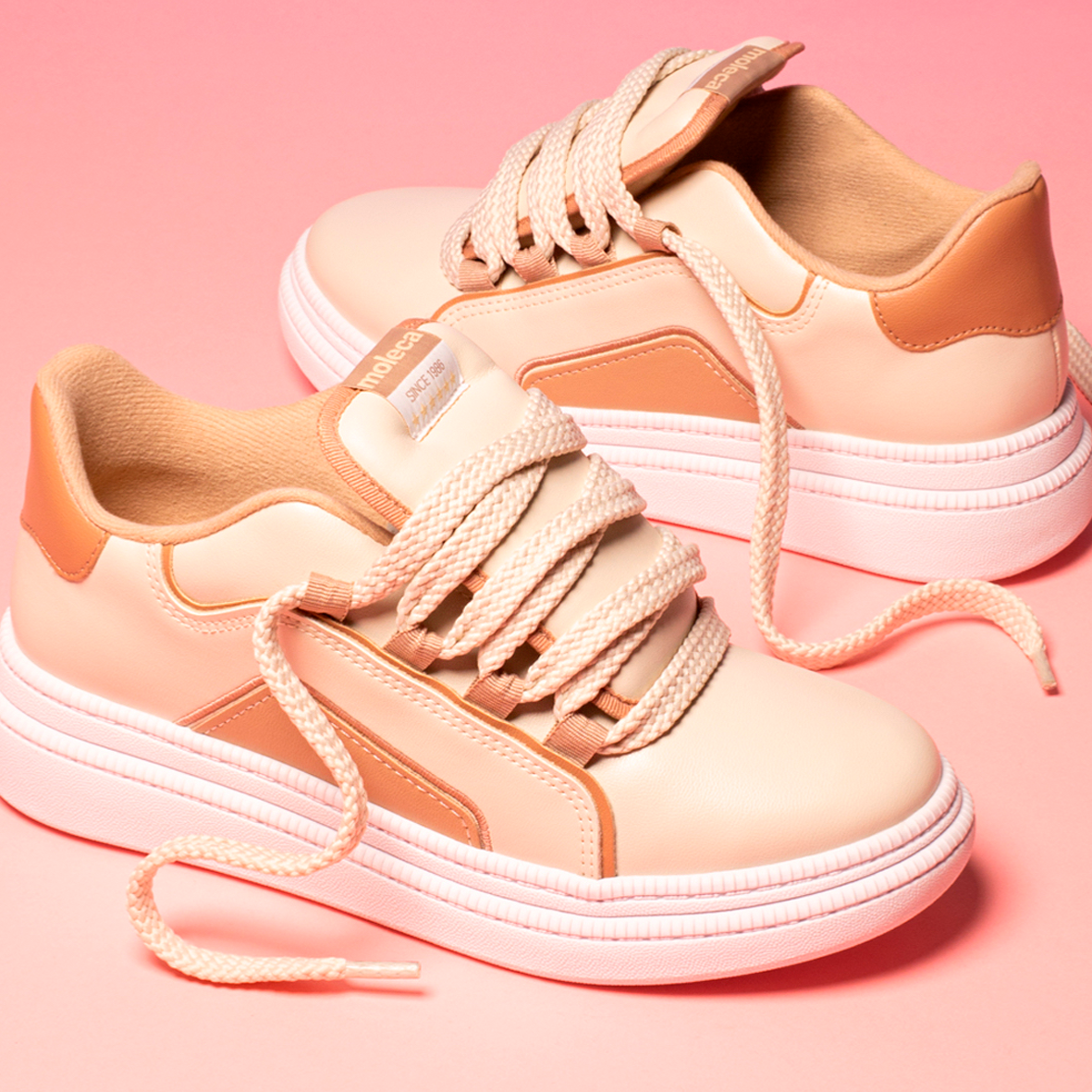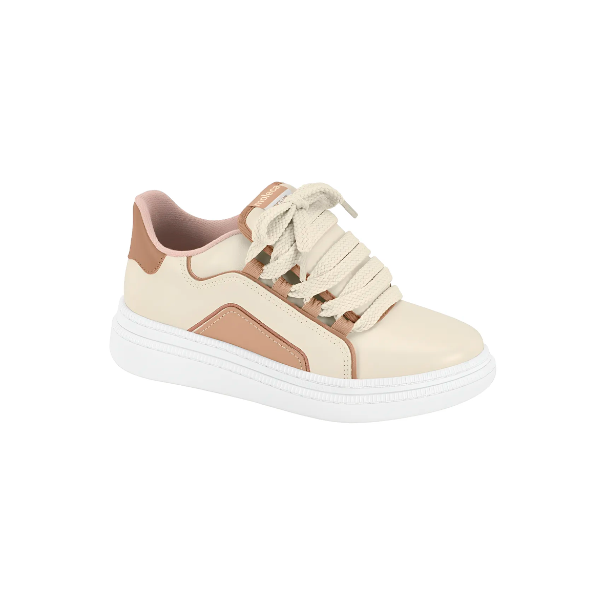 O Tênis Feminino Moleca da linha Dulce Maria traz um design moderno e cheio de charme. Com acabamento em tons suaves, combina delicadeza e estilo urbano em um só modelo. O cadarço robusto adiciona personalidade, enquanto o solado branco garante conforto e versatilidade para o dia a dia. Ideal para compor looks casuais com um toque fashion.